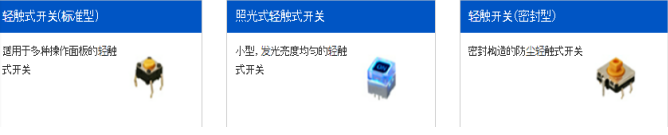 輕觸開關也是一個導電的媒介,它可以控制電流通過和斷開,不管是結構還是操作都比較簡單,在造價成本上也比較低廉,并且是一 種電阻荷較小的按鍵產品,所以這種開關在電子產品上得到了很廣泛的運用,可以說按鍵少,有足夠空間的線路板或電路板都可以用 輕觸開關。