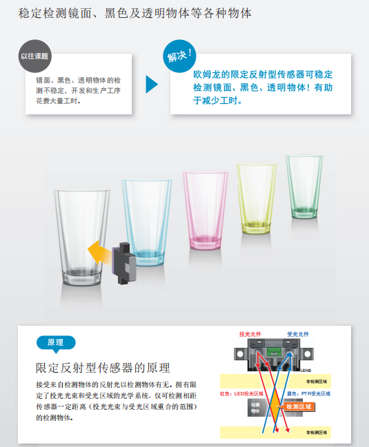 歐姆龍在光學(xué)傳感技術(shù)方面的成功,為其聚光反射式傳感器B5W產(chǎn)品開發(fā)鋪平了道路。該系列傳感器為多領(lǐng)域應(yīng)用而設(shè)計,它們能夠探測到包括反光和透明材質(zhì)在內(nèi)的所有不同類型的物體。