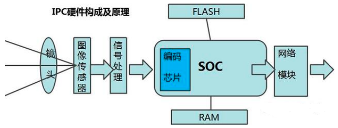第三代數(shù)字視頻監(jiān)控主要系統(tǒng)構(gòu)成設(shè)備:網(wǎng)絡(luò)攝像機(IPC)、視頻編碼器(DVS)、網(wǎng)絡(luò)錄像機(NVR)液晶監(jiān)視器、智能分析單元、CMS服務(wù)器、解碼服務(wù)器。IPC硬件構(gòu)成及原理:圖像信號經(jīng)過鏡頭輸入后,由圖像傳感器轉(zhuǎn)化為電信號,模/數(shù)轉(zhuǎn)換器將模擬信號轉(zhuǎn)換為數(shù)字信號,再經(jīng)過編碼器按一定的編碼標(biāo)準(zhǔn)進行編碼壓縮,在控制器的控制下,由網(wǎng)絡(luò)服務(wù)模塊按一定的網(wǎng)絡(luò)協(xié)議發(fā)送到網(wǎng)絡(luò)上,控制器還可以接收報警信號及發(fā)送控制信號。