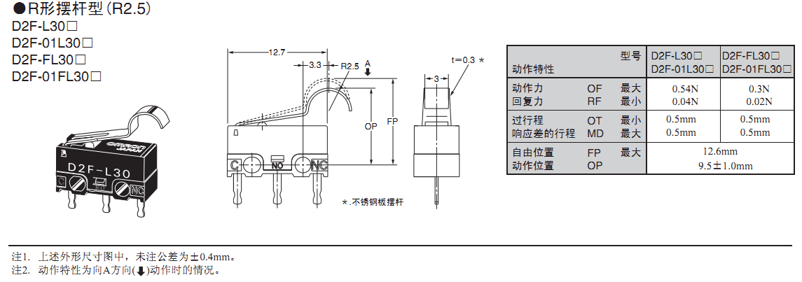 歐姆龍微動開關(guān),D2F-01FL2-D-E,歐姆龍微動開關(guān)D2F