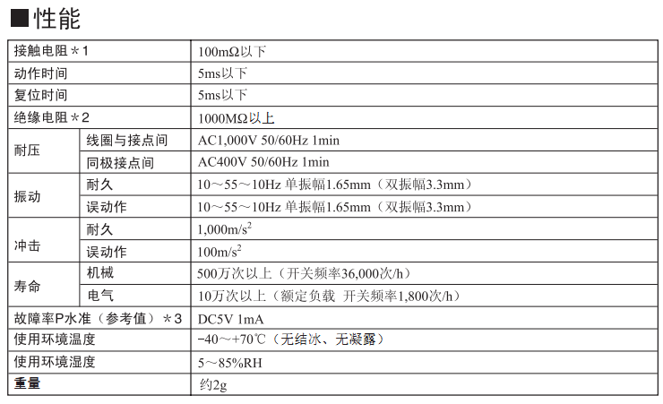 寬范圍的接點(diǎn)開(kāi)關(guān)區(qū)域1mA~1A。