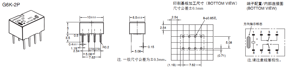 高5.2mm×寬6.5mm×長(zhǎng)10mm的超小型,對(duì)應(yīng)高密度封裝(G6K(U)-2F(-Y)型)。