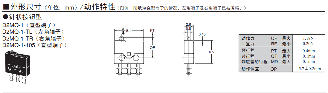 歐姆龍微動(dòng)開(kāi)關(guān),D2MQ-1,歐姆龍微動(dòng)開(kāi)關(guān)D2MQ