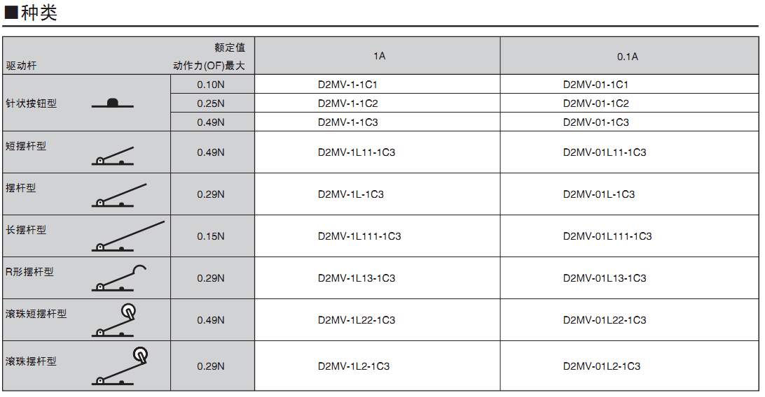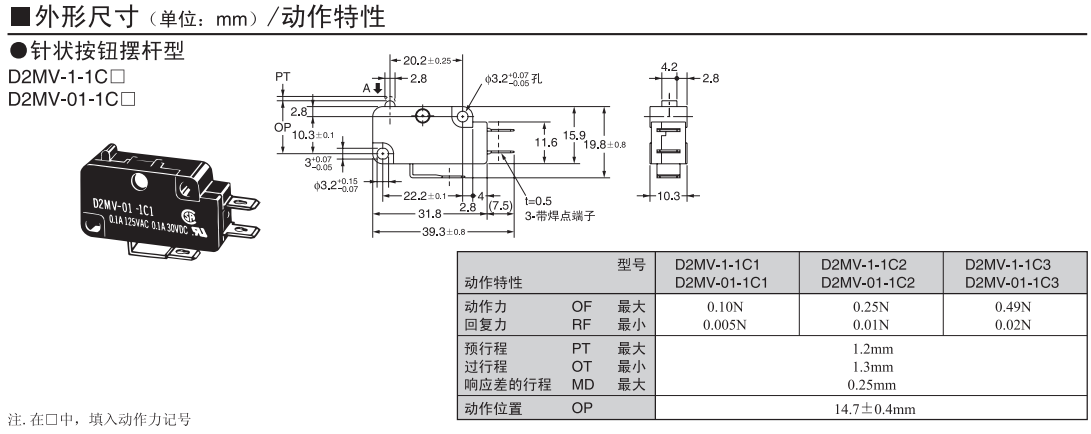 D2MV 小型基本開關(guān)