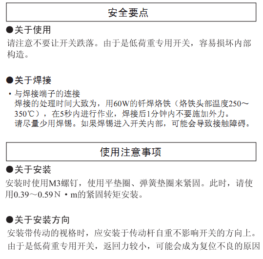 低負(fù)載動作型的小型基本開關(guān)