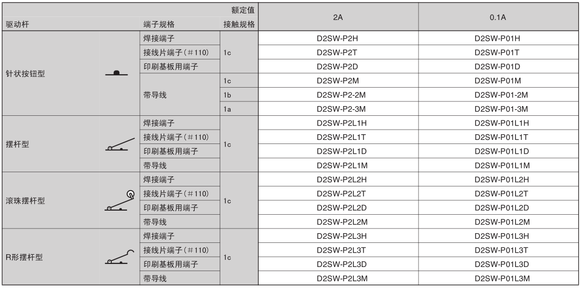 ? 可動片為單頁片式構(gòu)造可以對應(yīng),AC250V 2A開閉,也有微小負(fù)載型。