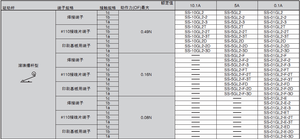 ? 備有0.1A~10.1A型的各個品種,產(chǎn)品規(guī)格齊全,是歐姆龍暢銷的開關(guān)。