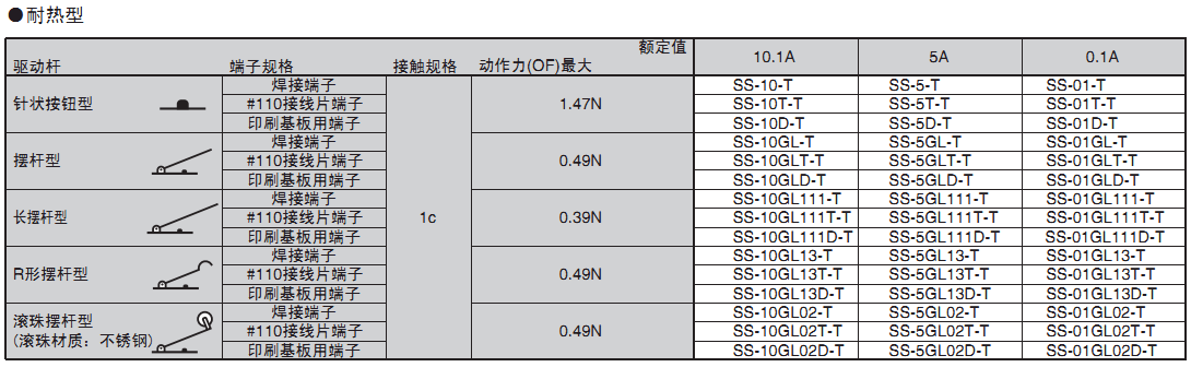 備有0.1A~10.1A型的各個(gè)品種,產(chǎn)品規(guī)格齊全,是歐姆龍暢銷(xiāo)的微動(dòng)開(kāi)關(guān)。