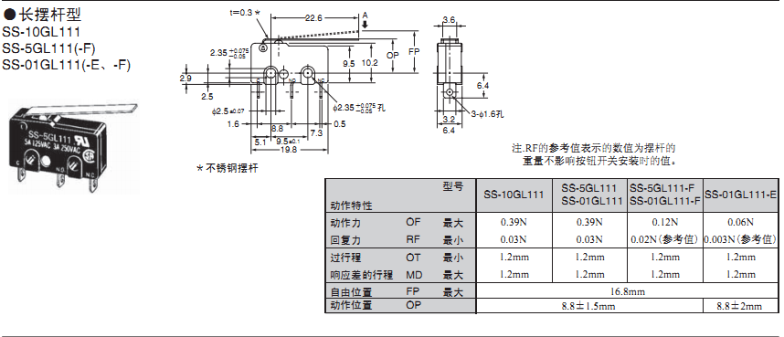 歐姆龍微動開關,SS-5GL111,歐姆龍微動開關SS