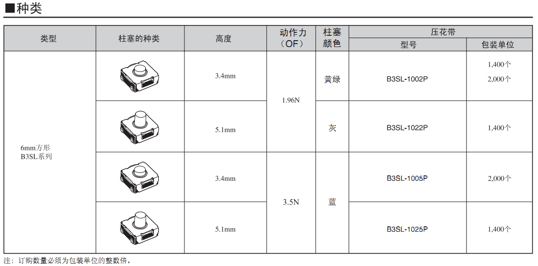 實現(xiàn)了橡膠柱塞的舒適觸感與中等行程,表面安裝型 · 密封型輕觸開關(guān)