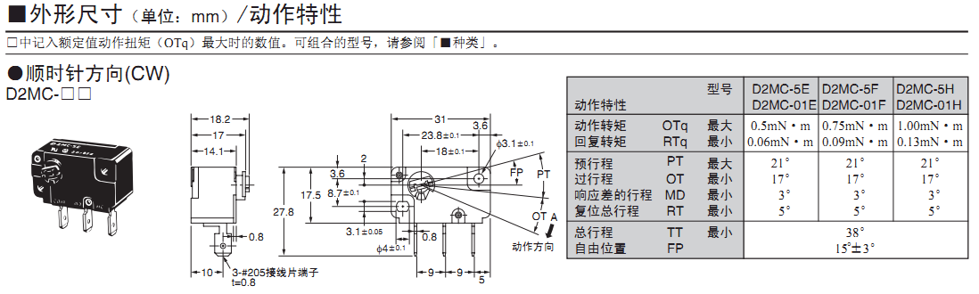 D2MC 輕轉(zhuǎn)矩基本開關(guān)