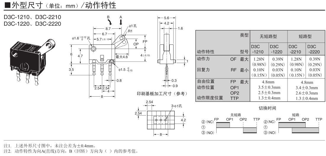 歐姆龍超小型,輕量,3mm的長(zhǎng)行程。