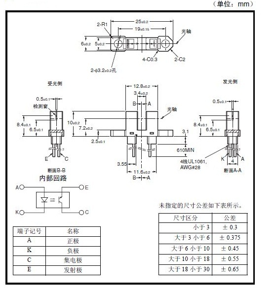 帶線槽型光電傳感器
