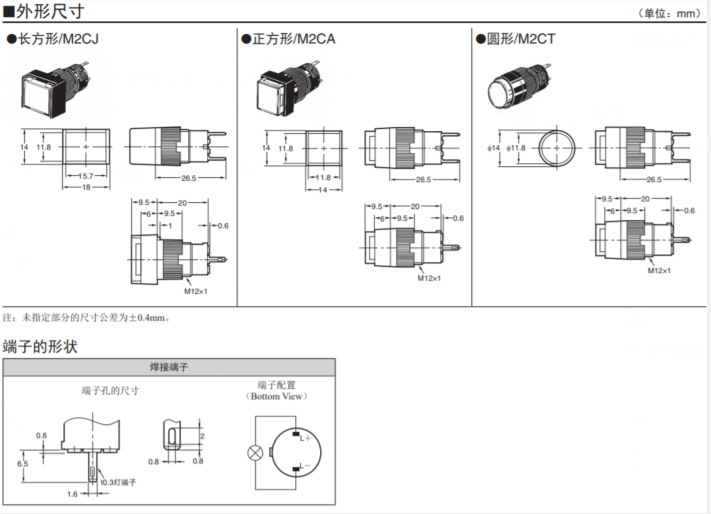 長(zhǎng)20mm、圓型f12系列