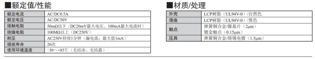 接點(diǎn)構(gòu)造備有雙面觸點(diǎn)型和上觸點(diǎn)型兩種。 (上接點(diǎn)型只有0.5mm間距)