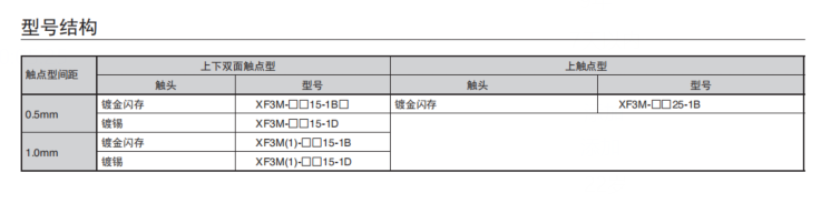 接點(diǎn)構(gòu)造備有雙面觸點(diǎn)型和上觸點(diǎn)型兩種。 (上接點(diǎn)型只有0.5mm間距)