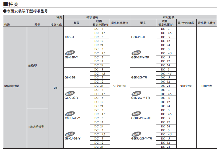 G6K 表面安裝繼電器