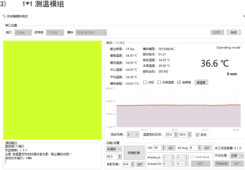 采用串口通信協(xié)議,波特率默認(rèn)115200,8數(shù)據(jù)位,1停止位,無校驗。其中用戶控制端是主機,測溫模組是從機,采用一發(fā)一收。協(xié)議輸出數(shù)據(jù)有兩種查詢命令方式,一是只查詢?nèi)梭w溫度,二是查詢陣列溫度數(shù)據(jù)。