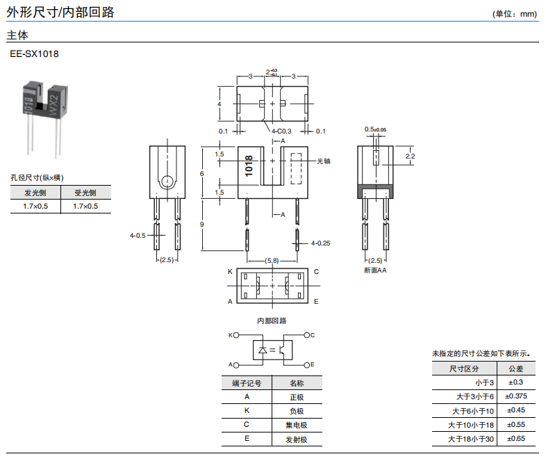微型光電傳感器EE-SX1018