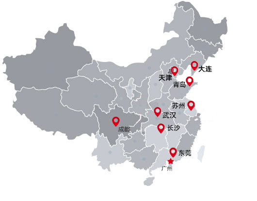 國內(nèi)設(shè)有多地辦事處:廣州、東莞、長沙、成都、蘇州、武漢、青島、大連、天津