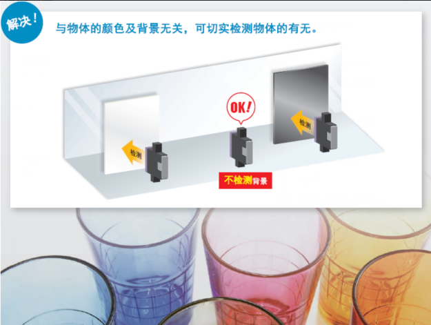 二:與物體的顏色及背景無關(guān),可切實(shí)檢測(cè)物體的有無