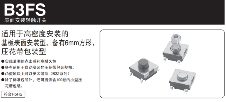 那么在變頻器的操作面板是上,會有用到開關(guān),變頻器行業(yè)中的開關(guān)歐姆龍占據(jù)大部分市場,我們行業(yè)常用的系列型號B3FS-1002P,下圖為歐姆龍的開關(guān)產(chǎn)品。