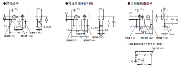 歐姆龍微動開關(guān)SS系列的尺寸參數(shù)如下圖: