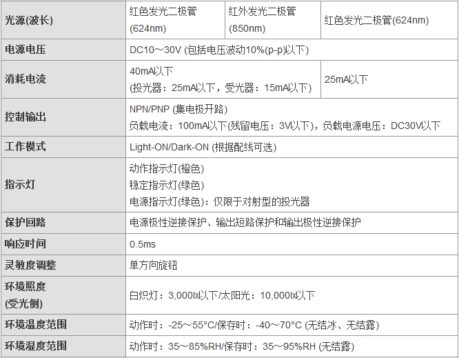 從食品飲料、紡織、制陶制磚到物流,E3FA/E3RA/E3FB型傳感器通常安裝于各行各業(yè)的廠房之中,無論是何種應(yīng)用總有一款適合您。這一應(yīng)用廣泛的光電傳感器系列具有高可靠性和增強的性能,其中包含對射型、回歸反射型和擴散反射型(具有直視型和側(cè)視型兩種版本)。對于某些特定應(yīng)用,背景抑制型、限定反射型和透明體檢測型也提供了直視型版本。