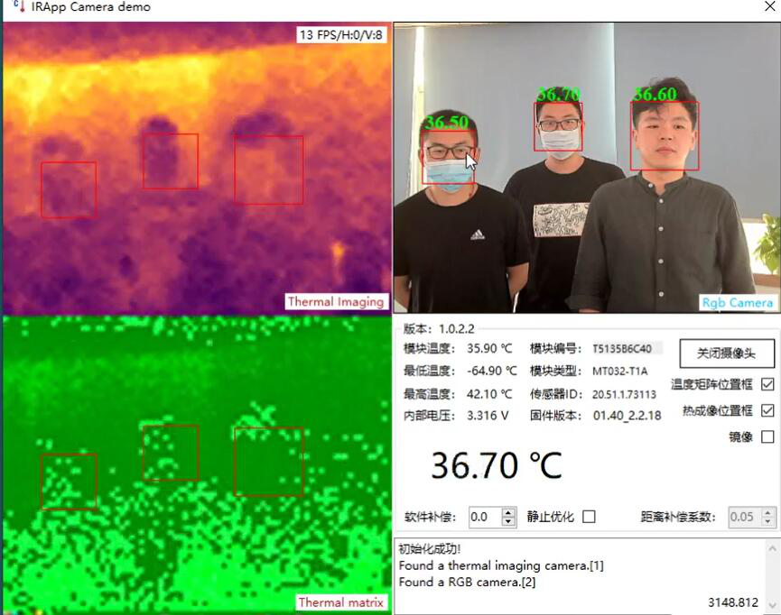 在人臉面板機上獨立安裝測溫模塊,實現(xiàn)人臉識別多人及快速測溫。